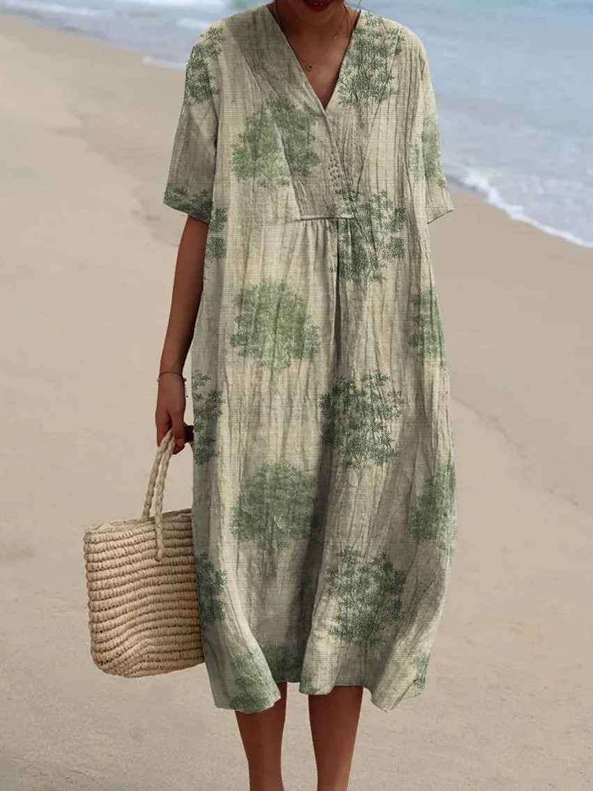 Women's Vintage Floral Art Print Flowy Casual Dress